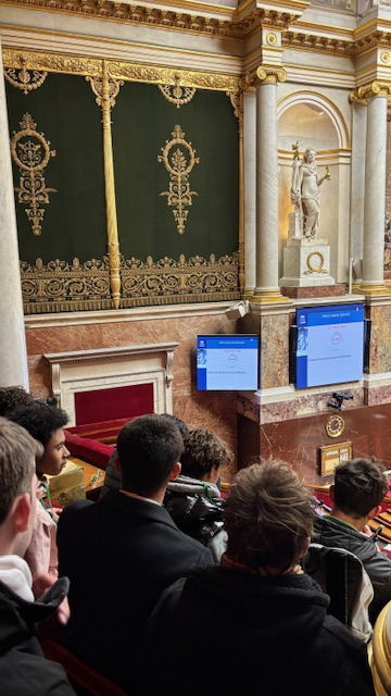 Les élèves ont pu découvrir les salons de travail, la bibliothèque, la salle des « pas perdus », mais aussi, l’hémicycle.