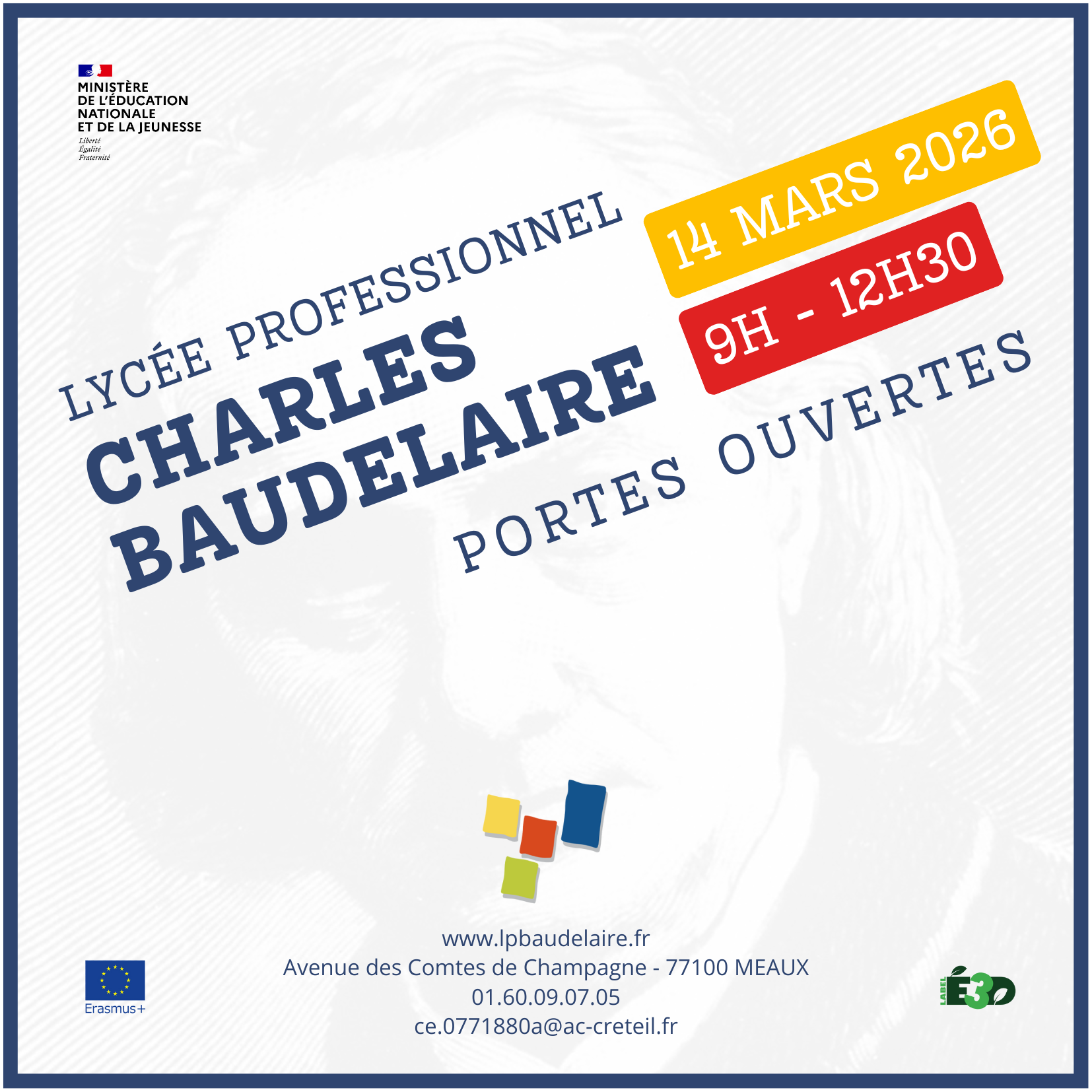 Le lycée professionnel Charles baudelaire ouvrira ses portes le samedi 14 mars 2026 de 9h00 à 12h30.