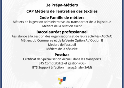 Vous êtes cordialement invités à venir visiter l’établissement et à vous informer sur les formations qu’il dispense :