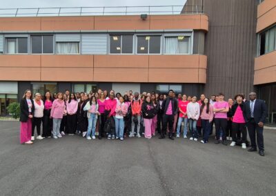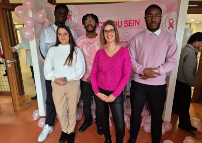 Encadrés par leurs enseignants, Mme MENNECHEZ et M. MEZIANI, les élèves ont déployé tout leur sens de l’initiative et de la communication pour mener à bien ce projet. Au programme : affichages informatifs dans les espaces du lycée, mailing de sensibilisation adressé au personnel et aux familles, exposition thématique, photobooth symbolique aux couleurs d’Octobre Rose, ainsi que la mise à disposition de documentation et d’un questionnaire visant à mesurer les connaissances et perceptions autour du dépistage.