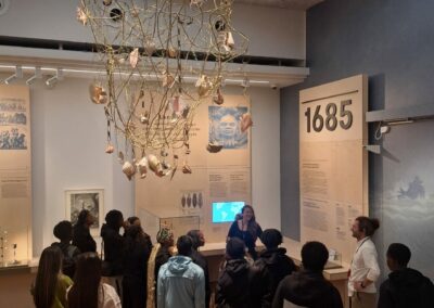 La visite s’est ensuite articulée autour de plusieurs thématiques : les parcours migratoires, les motifs de départ, l’esclavage, la première et la seconde Guerre mondiale, les génocides et les difficultés d’intégration mais aussi l’évolution des lois et droits.  Grâce à une scénographie moderne, mêlant témoignages audiovisuels, objets du quotidien et documents historiques, les élèves ont pu se projeter dans la réalité vécue par des générations de migrants. Avec des  échanges riches et émouvants tout au long de la visite, les élèves se sont montrés très attentifs et curieux.